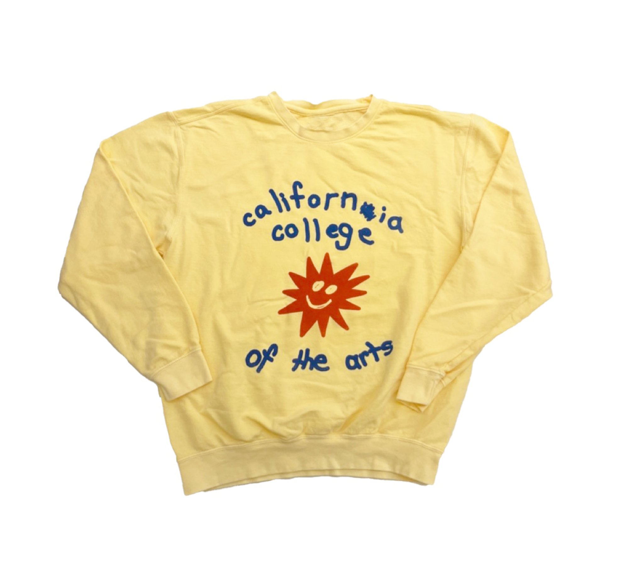 2-color screenprinted graphic on hand-dyed comfort colors sweatshirt; designed, printed, and dyed by maria cardenas and savithri velaga.
